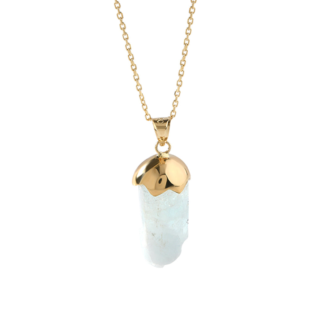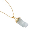 Experience the serene beauty of the ocean with this 18K Gold Raw Aquamarine Pendant Necklace. Featuring a naturally uncut aquamarine gemstone, delicately encased in a golden petal cap, this piece radiates effortless elegance and natural charm.