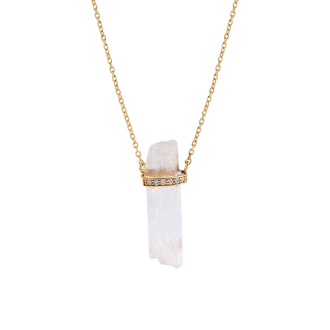 Gold Natural Pink Kunzite Necklace with Diamond Band