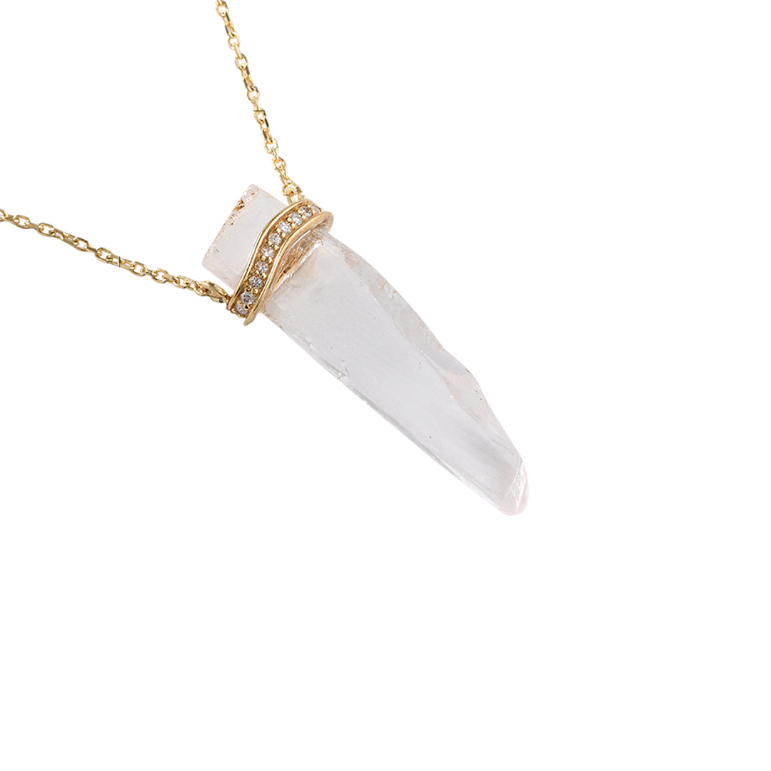 Radiate pure elegance with this 18K Gold Raw Pink Kunzite & Diamond Necklace, a striking fusion of nature's raw beauty and refined luxury. The uncut pink kunzite gemstone shimmers with natural brilliance, accentuated by a delicate row of dazzling diamonds for a subtle yet breathtaking finish.